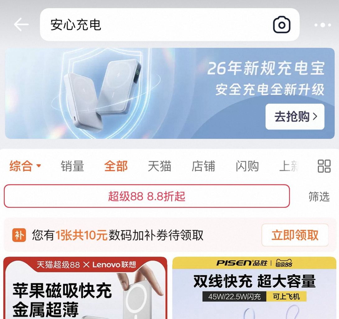 业内人士表示,充电宝新国标的发布不仅是对产品性能的考验,更是对消费者安全的保障。电商平台此次联合行业头部品牌积极落地,并推出“安心充电”服务和焕新补贴,希望重塑充电宝行业的品质标杆,更让消费者选购时多一份安心。